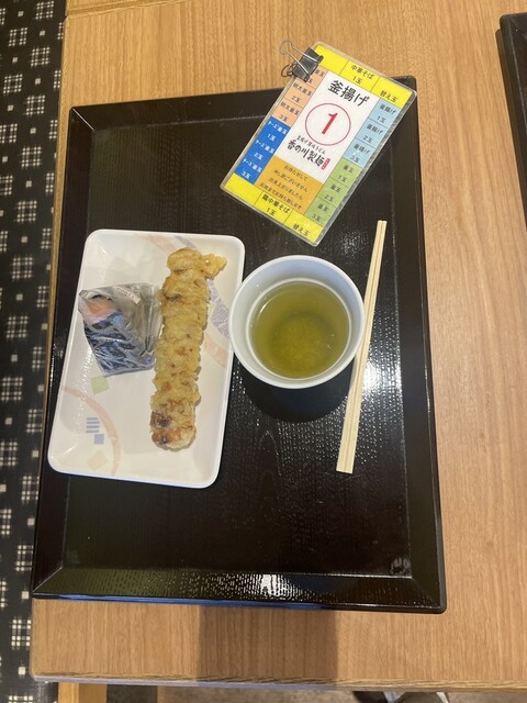 釜揚げ、かけ、ぶっかけなどをオーダーしてできたらお盆に乗せて天ぷらコーナーへ、、、