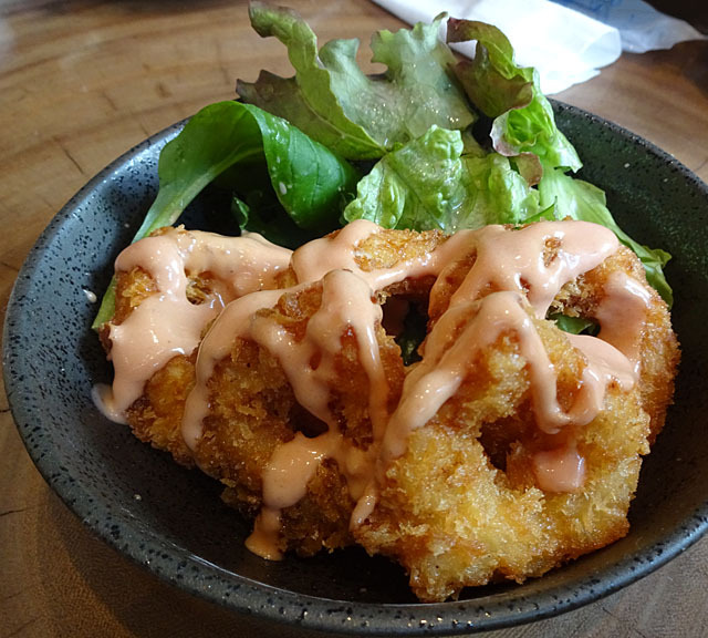 帰りに晩御飯を食べることになり、以前も来たここへ。17時〜19時のハッピートバコセット(サッポロ黒生×2、餃子一人前、ウズラ卵の小鉢で、1100円)がコスパ抜群、その後色々たのんで、3000円弱、美味いし安い、さすが大阪。雰囲気は、一軒家を改造した、昔良く行った、アメ村のレゲエバーみたいな感じです。