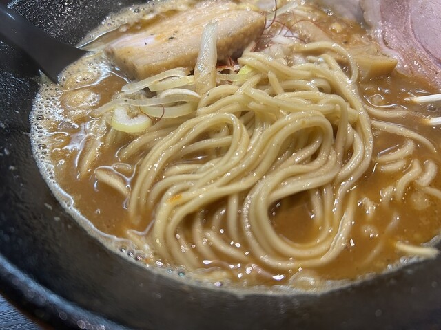 甘くてコクのある味噌ガツンスープに、食感いい麺。良過ぎる土台を圧倒するような特徴的な味噌のインパクト!前から思ってたけど(僕の好みでは)ココが関西No. 1味噌だと思う。