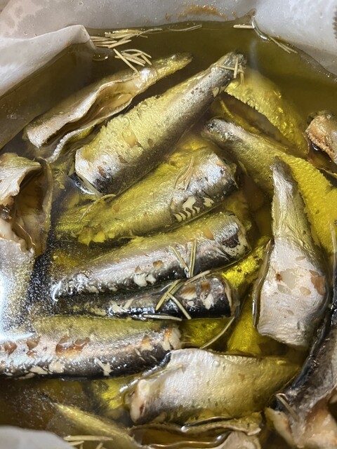 今日は、おでんと、シラスのアヒージョと、以前美味しかった手作りサーディンを使ったパスタをいただきました
