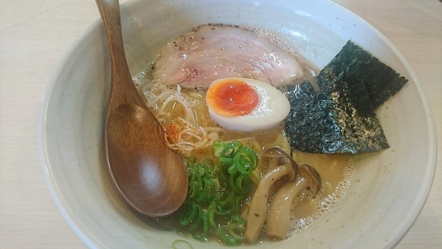 濃厚な鶏ガラスープと風味いっぱいの魚介スープ合わせたこだわりスープに「松阪豚」と国産小麦100%特有の少しくすんだ中太の縮れ麺、滑らかな口当たりともっちりとした食感は、スープと一緒になって口の中を満足させます。