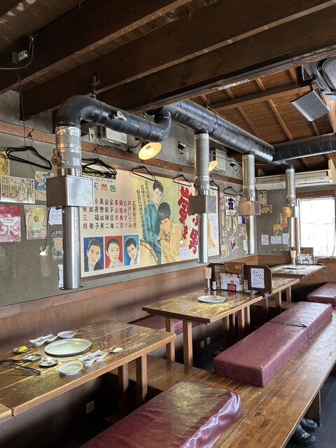 久し振りに寺方に。 昔親戚がいたので、何度か通ったが、今とは全く街が変わっている。 もっと田舎だったような。 そんな時に見つけた懐かしい昭和の風情漂う看板。 早速入りました。 店内、よく集めたなぁと思う程、 昭和のポスターなどが貼られています。 気分は昭和にタイムスリップ! 当時が蘇ってきます。 古き良き時代を思い出しながら、 七輪で焼くお肉、 ほっこりします... 詳細を見る