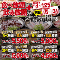 【期間限定】◆プレミアム食べ放題&スタンダード飲み放題◆ 5786円⇒ 5000円(税込)