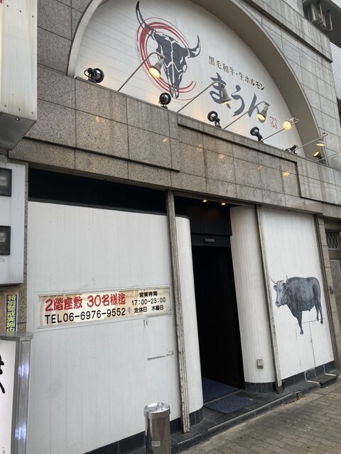 お店は新深江駅からは徒歩5分以内くらいの大通り沿いにあり、外観は牛のイラストがかなり印象的で、建物丸ごと店舗なお店さん。