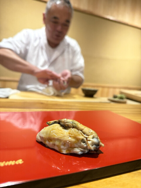 祝日の18時半に予約して初訪問。北新地にあった時に大好きで通っていたお鮨屋さん。6年ぶりに、ハワイ・奄美大島を経て、大阪深江郷土資料館敷地内に帰還。