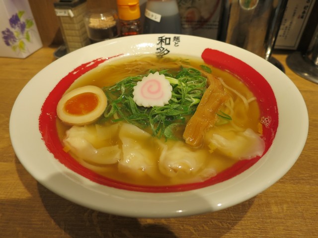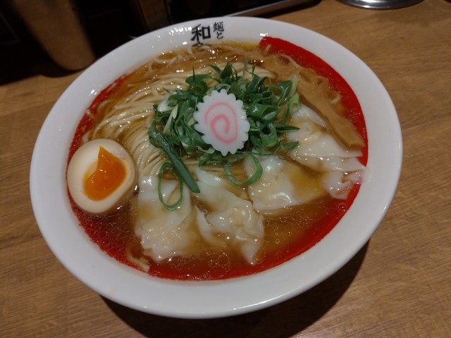 阪急京都線上新庄駅南口から東へ徒歩1、2分くらいのところにあります。 お店に入るとカウンター席のみで、10つあります。 ここでは、海老醤油ワンタン麺と鶏マヨ丼をいただきました。 ほどなくして、ワンタン麺と丼が運ばれてきました。 海老醤油ワンタン麺 具は、海老ワンタン、メ... 続きを読む»