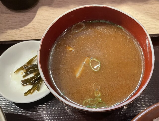 順番になりカウンターに座り、日替わり丼と味噌汁をオーダー。
