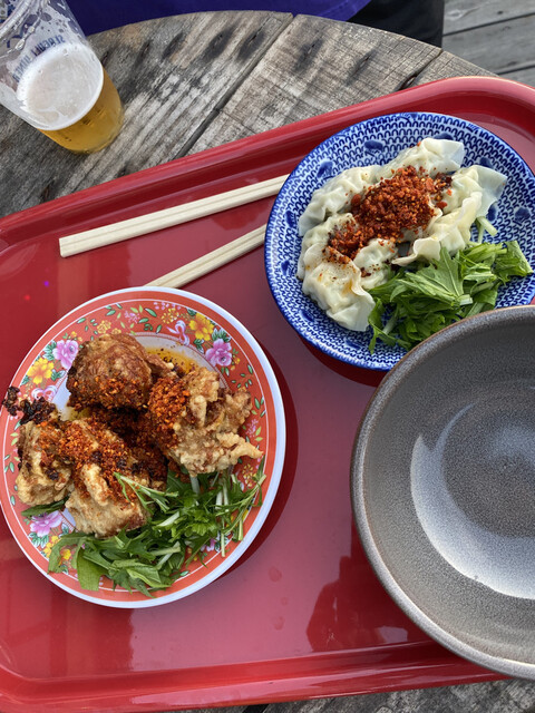 タグボート大正へ 適当に座る場所を探して こちらの コウベ エニシ さんで食事ゲット! 飲みにきたので坦々麺ではなく 台湾唐揚げ 水餃子を注文 どちらも同じ味付... 詳細を見る