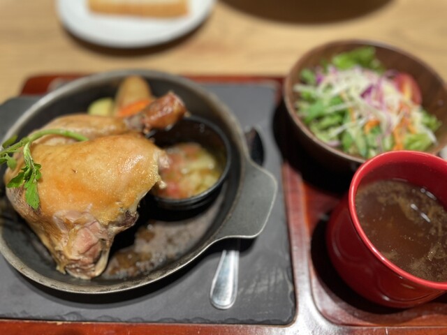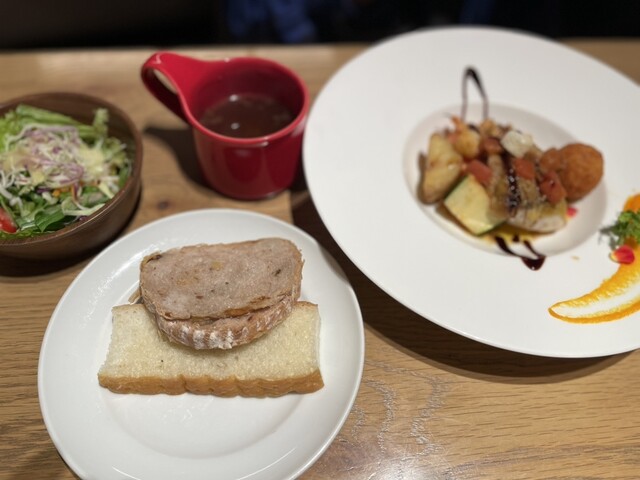 前から来たかったこちら、たまたま用事があって寄りました。 おひとり様なのに4人掛けの豪華な皮のソファ席に案内していただき恐縮。 とは言え17:00前、グランドメニューはやってるけどお腹空いてない…。 で控えめに、サラダとタパス一品、白ワインをいただきましたが、控えといて良かったです❗️ ... 詳細を見る