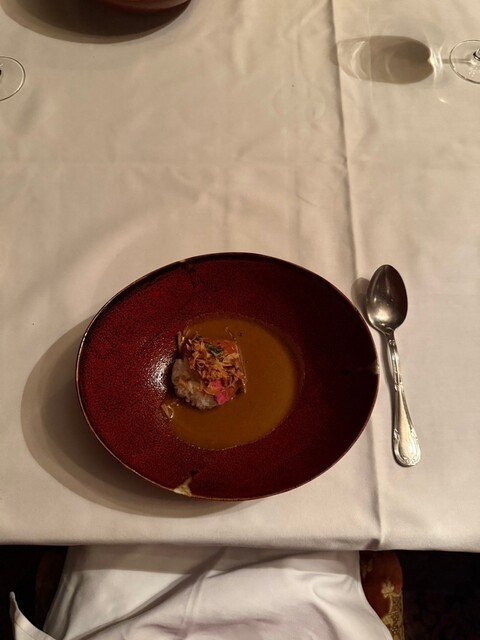 字を見るだけでは味のイメージがつきませんでしたが、コーンポタージュ?と思うぐらい蕪と百合根の甘みが引き立てられており美味。