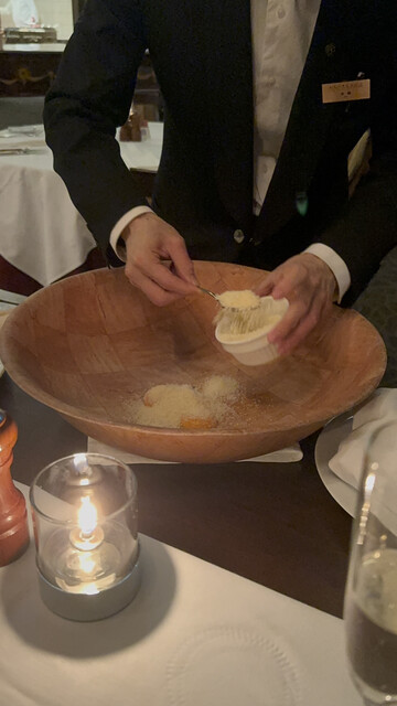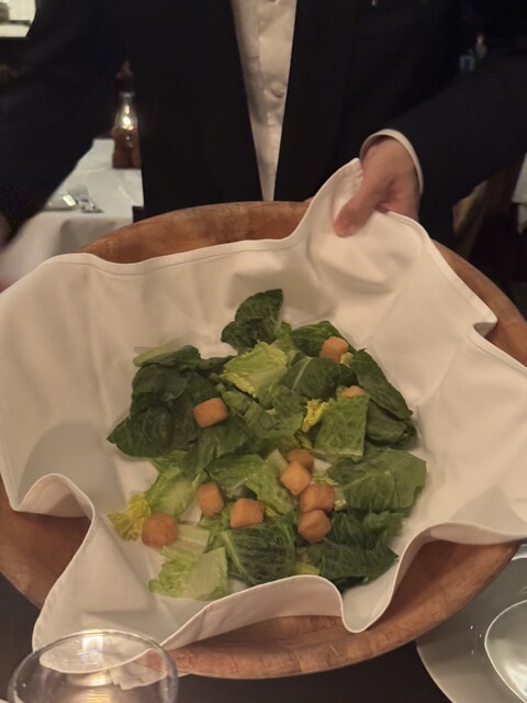 サラダを仕上げるテーブルパフォーマンスをじっくり見たの初めてです。