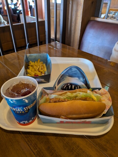 映画「ジョーズ」の舞台、アミティ・ビレッジの造船所をモチーフにした軽食レストラン。サンドイッチやフライドチキンを提供しており、サメ肉のサンドも食べられます。ドリンクやデザートメ...