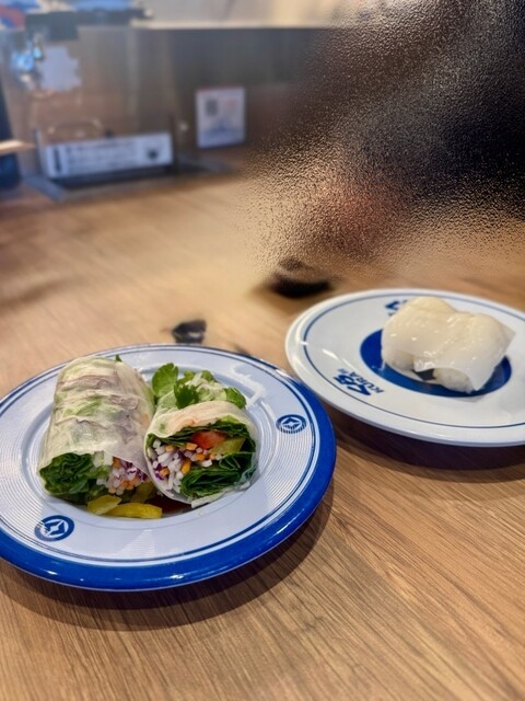 ベトナム社会主義共和国の「生春巻き」と、奥は普通にお寿司の皿で「ヤリイカ」