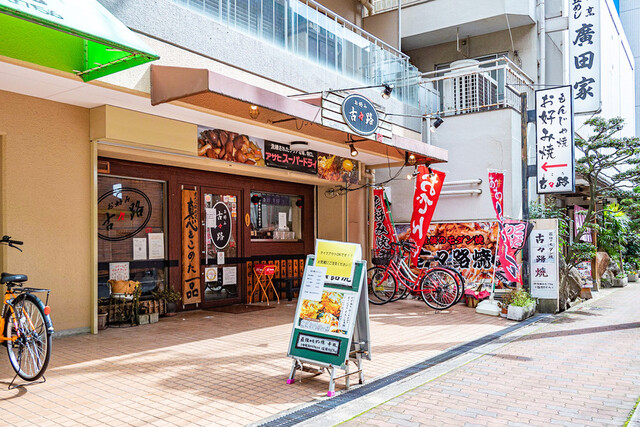 大阪住吉大社の裏通りにある、昔ながらのお好み焼を現代風にアレンジした創作お好み焼が人気のお店。お好み焼や焼きそばはもちろん何と言っても古々路焼き!!!
