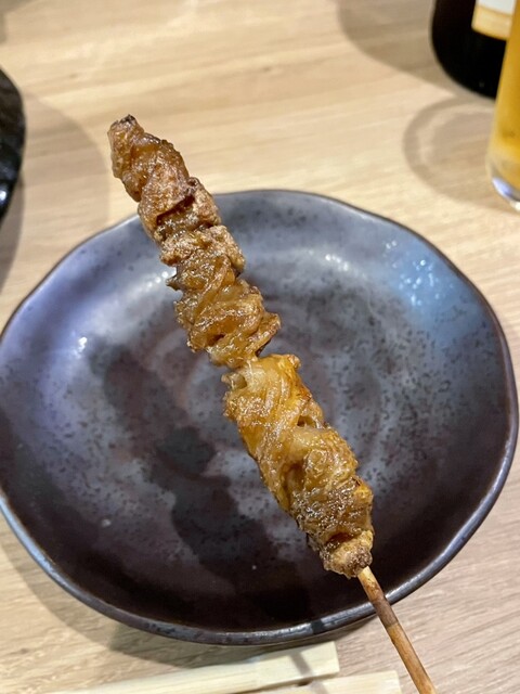 相方の好きな焼鳥の中でも格別お気に入りのとりかわ。 とりかわにこだわったお店があびこにあるのを知って予約の上訪問^_^。 とりかわへのこだわりはさすがで、焼き上がるまで1週... 詳細を見る
