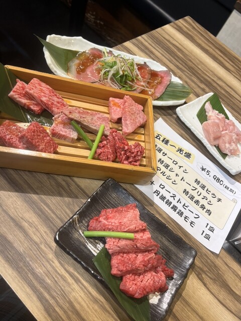 お肉の盛り合わせの一光盛り(5,980円)がちょうどよいボリューム感でいろいろ食べることができました!