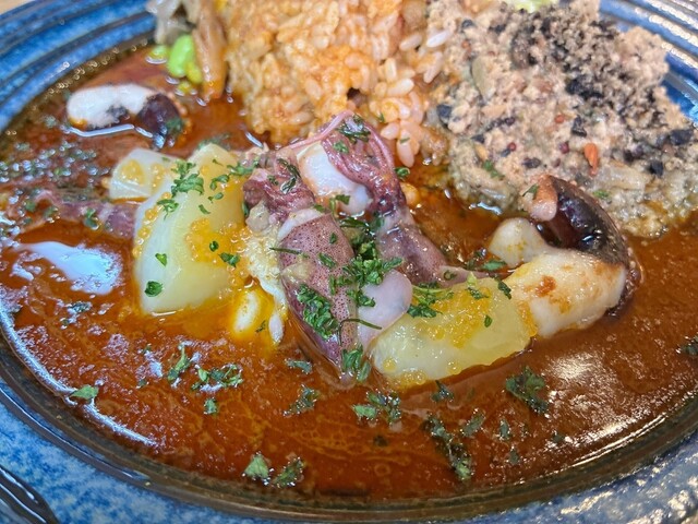 ・スパイスチキンカレー ・トリュフと黒胡椒のキーマカレー ・濃厚海老出汁 春の海老ビスクカレー 〜デカ海老ローストと桜エビ ディルオイルとうすい豆 ... 詳細を見る