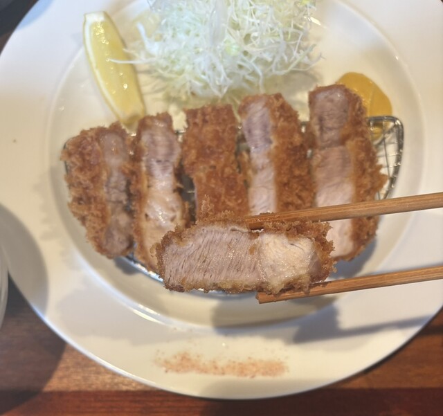 こちらのヒレカツ、とてもジューシーなんです。おすすめは塩‼️塩を少しかけて食べる方がソースにつけて食べるよりお肉の美味しさをダイレクトに味わえます‼️