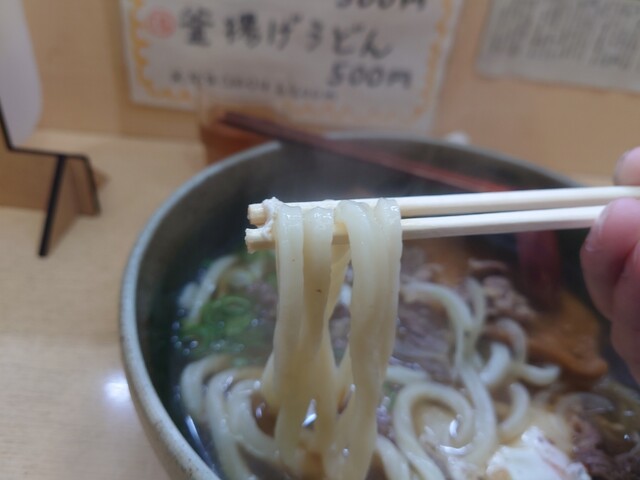 手打ちの麺はしっかり剛麺。甘さ控えめでス...