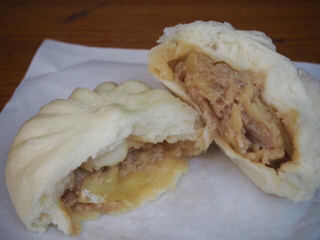 私は、肉まんと春巻きを注文しその場でいただきました。お店の前に2人がけのベンチと長テーブルがあり、他にも食している方々がいました。