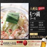 選べる鍋(もつ鍋か八から鍋から選択可能)・逸品3種・サラダ・揚げ物2種・〆のラーメン・プチデザート