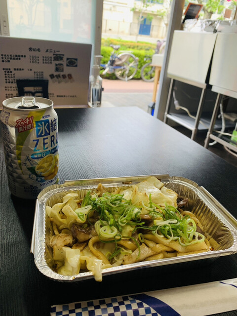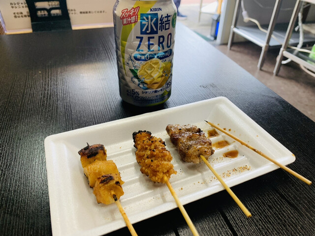 今日からというホルモンうどんと串焼きと酎ハイを!