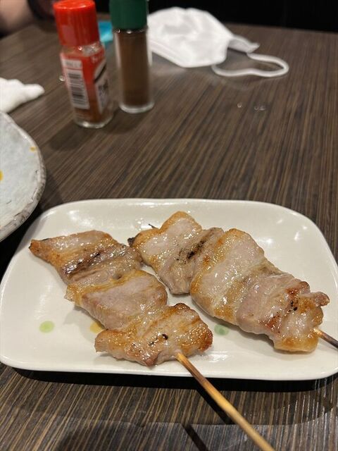 生中(その他も選べます)と焼き鳥4本のセット。皆様、最初にこれを頼む方が多いようです。