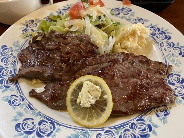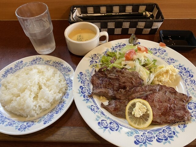 目の前の鉄板で焼かれるステーキとマスター自家製のステーキしょうゆはベストマッチ! 「ステーキは脂っぽくて苦手…」といった概念を覆します。 あっさり食べられるステーキは女性の方でもぺロリと食べてしまうほどです。 またステーキだけでなく洋食メニューも充実!オムライスやビーフシチュー、ビーフカレーなど様々なニーズに合ったメニューを取りそろえております。
