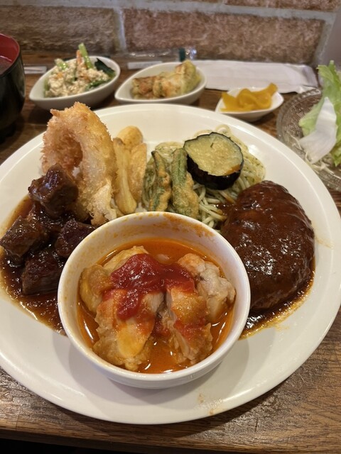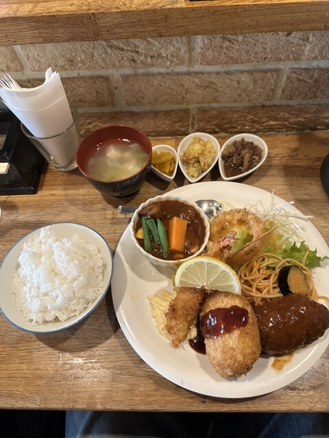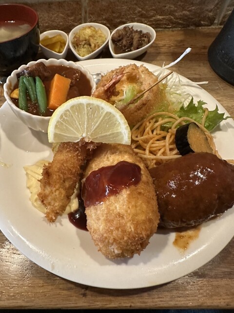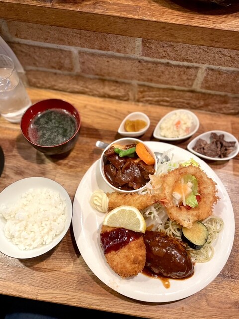 いただいたのはハンバーグ定食。メインを注文して小鉢が選べます。正直平均レベルの味ですが、どこか懐かしい昔ながらの味とい...