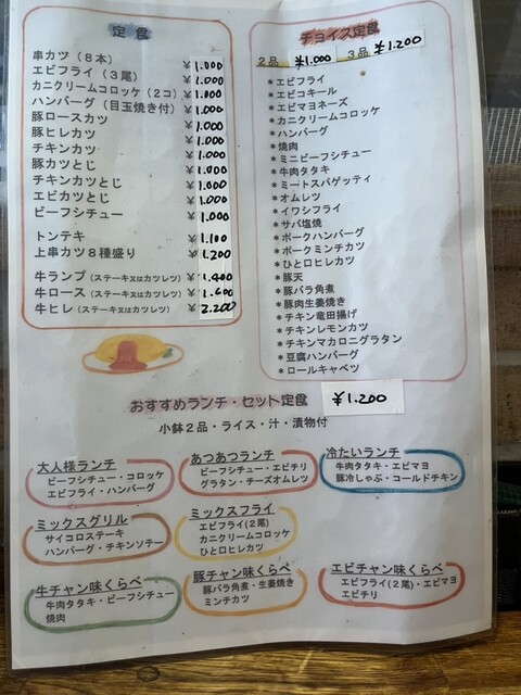 コロッケ、海老フライ、ハンバーグ、ビーフシチュー...
