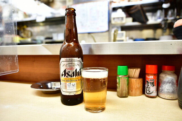 昭和の香りがする居酒屋ですが、きれいに改装されています。 ビール大瓶が390円、激安です。