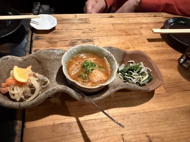 難波でまた素敵なお店を見つけました。今回は立ち飲みではなく、ゆったり座れるスタイル。 1人前2,000円のおまかせコースを注文。正直そこまで期待していなかったのですが、いい意... 詳細を見る