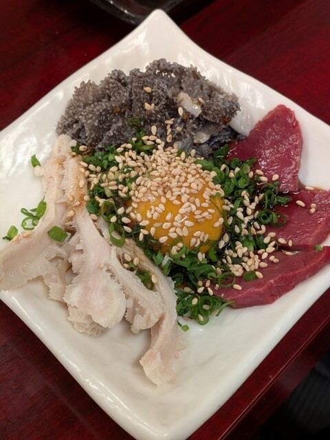 京橋〜鶴橋〜難波グルメツアー1軒目 知り合いに勧めれて予約した鶴橋の焼肉屋さん。 ●刺身3種 ハチノス せんまい ハツ 臭みのないホルモンをユッケダレみたいなんで ... 詳細を見る