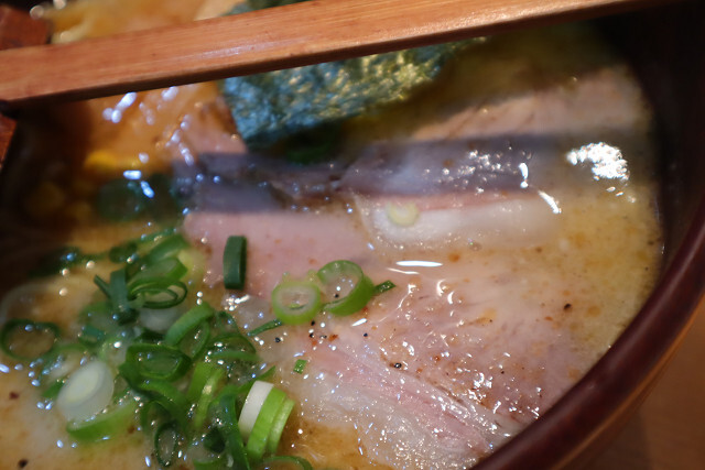 トッピン具は、チャーシュー、海苔、メンマ、コーン、ネギです。