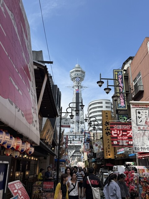三連休の人波はまるで通天閣の麓にできた人間の万里の長城。