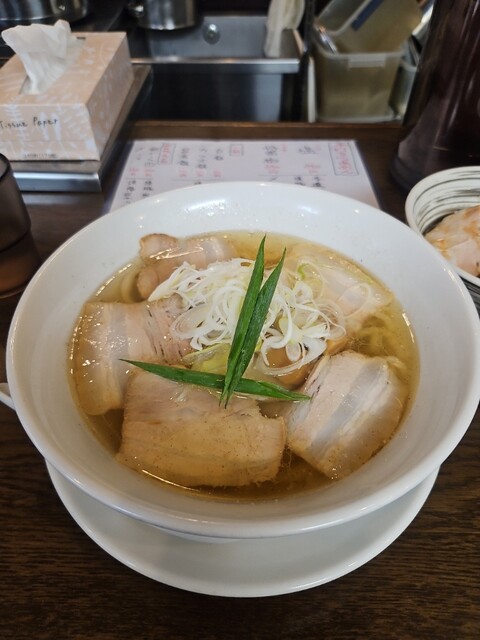 関西出張の帰り際、新大阪駅近くに店を構える、ラーメン百名店やす田さんに念願の初入店。 一番人気いりこ塩(850円)をいただきました。 まず見た目でもわかるとおり、スープが透き通っていて美しく、いりこ出汁の優しいスープに癒されます。 麺は自家製麺の太縮れ麺で、コシの強さが感じられ、あ... 詳細を見る