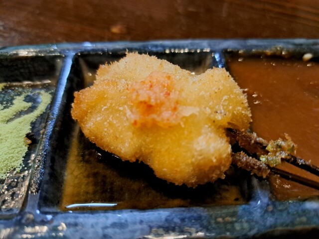 人気店みたいで何度か電話しても満席で断られこの日はようやく入店できました おまかせコースかお好きなもの選べる単品かでおまかせコースにしました。 ストップと言うまで串を出して... 詳細を見る