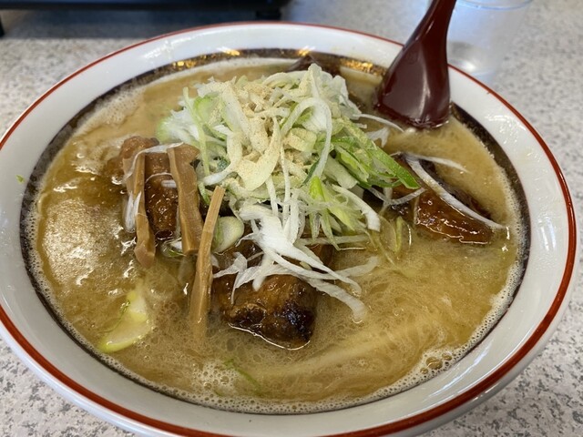 元祖豚骨ラーメン 鹿児島ラーメンと40年近く前から 国道が整備されたタイミングからの 老舗 久しぶりの帰郷で豚骨を食べたくなり 昼間っからの焼肉ジュージュー 塩タンも美... 詳細を見る