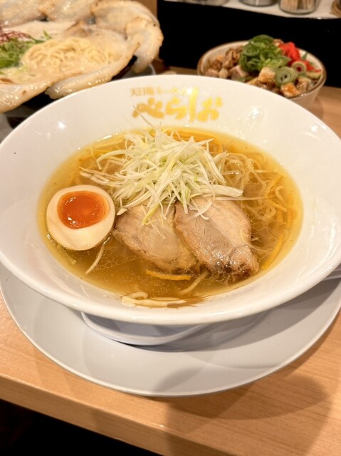 ゆずの香りがフワッと抜ける塩ラーメンは、あっさりしつつも旨味が深くて絶品。対...