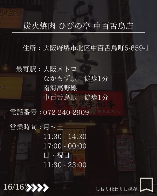 炭火焼肉 ひびの亭 中百舌鳥店(ヒビノテイ)