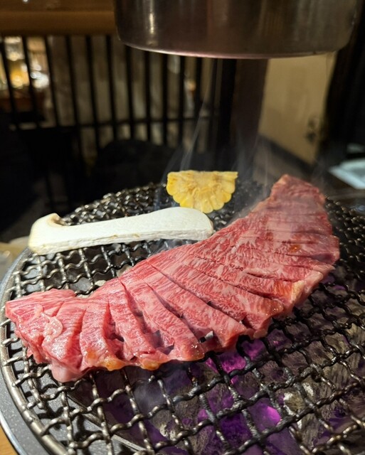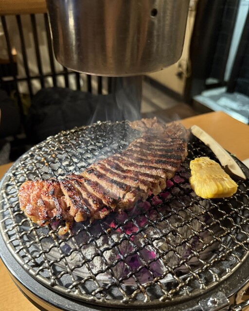 七輪の炭火で焼く形で、国産黒毛和牛と...