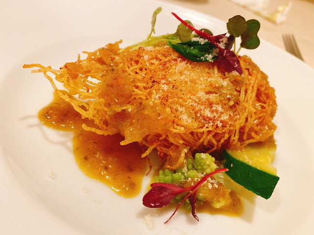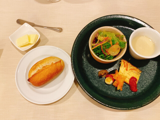 パンがあつあつで美味かったです。料理はサラダやメイン含めて甘めの味付けの印象。魚のソースは甘くなくてもいいかなぁ。。と思いました。