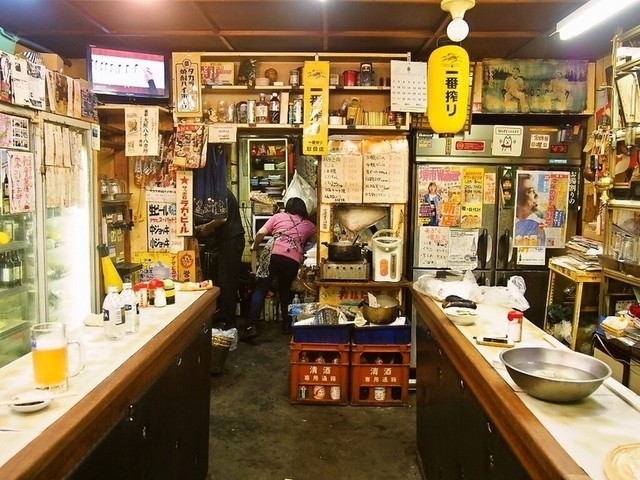 南海堺東駅より「堺東銀座商店街」をまっすぐ、KICHIRI(ダイニング居酒屋)・ふくふく(ふぐ料理)の店がある十字路を右へ約10M、ビールケース山積みで、特徴ある店。