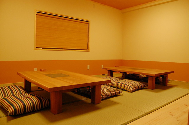 有 (10~20人可) 約10畳程度の座敷に150センチ長さの座卓を2卓ご用意しております。 12~15名程度までゆったりお座りいただけます。 |