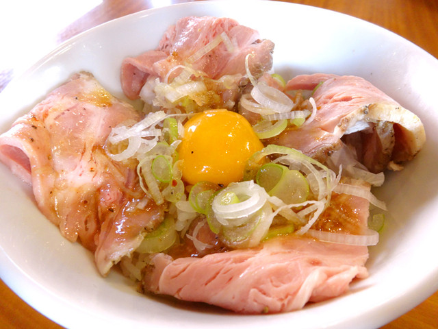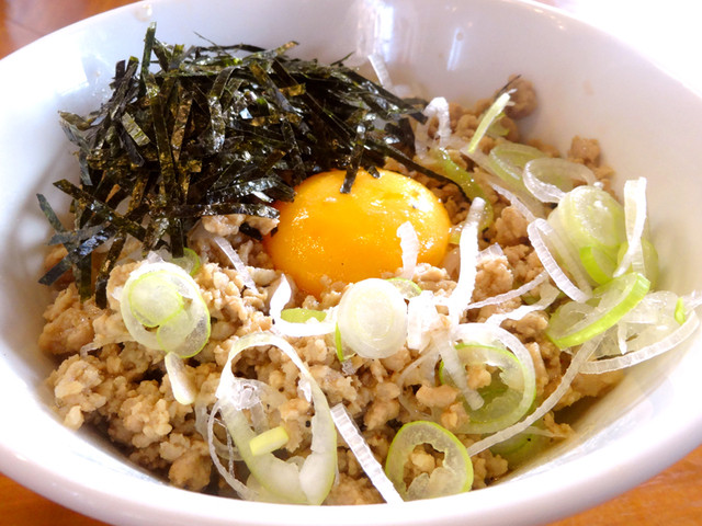 ★新鮮な国産鶏を8時間以上炊き込んで最大限にうまみを抽出。野菜や魚介が一切入っていない純系鶏白湯スープは濃厚でとろりとしていていながら柔らかい口当たり。他にもつけめんの麺は全粒粉の平打ち麺、トッピングには低温調理で作った自家製レアチャーシューを使用するなどこだわり満載。