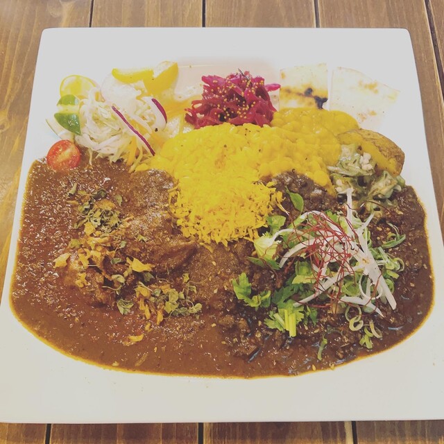 7月22円11時10分到着。11時30分開店。 一番乗りで、同行の妻以外、後客1人。 「ドムジン・W・プレート」 を私は「ラム(子羊)スパイシーシュラスコカレー」、 妻は「... 詳細を見る