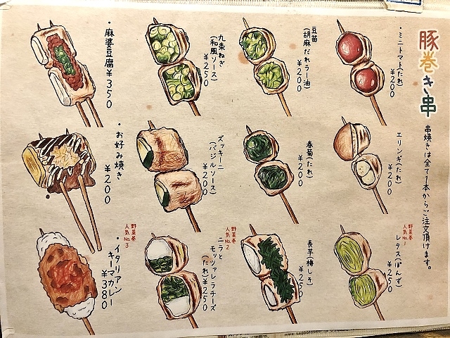 豚巻き串とかをウリにしてるんや。