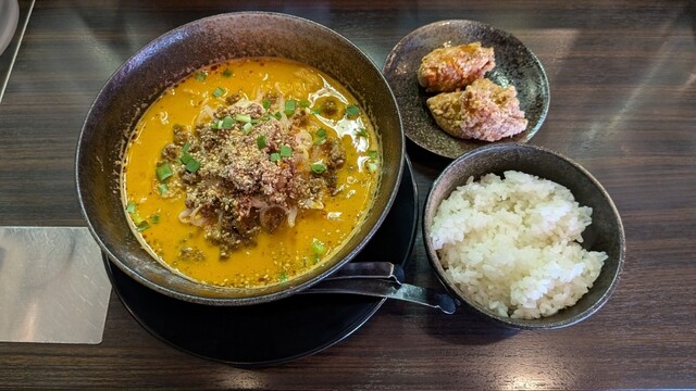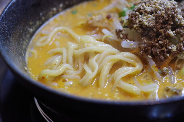 濃厚白ごま担々麺は、もっちりコシのある中太ちぢれ麺とスープは白ゴマベースの旨辛味…喉を通り抜ける心地よい辛...
