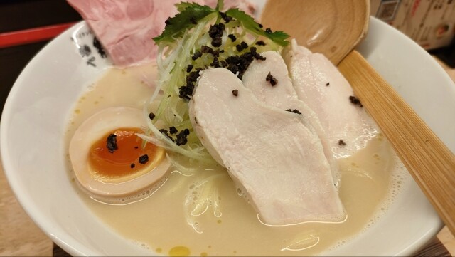 鶏パイタンとはまぐり出汁の効いた、濃厚ながらさっぱりとし...