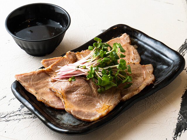 つけめんの麺は全粒粉の中太麺、トッピングには低温調理で丁寧に作った自家製レアチャーシューを使用するなど、食材にもこだわっています。